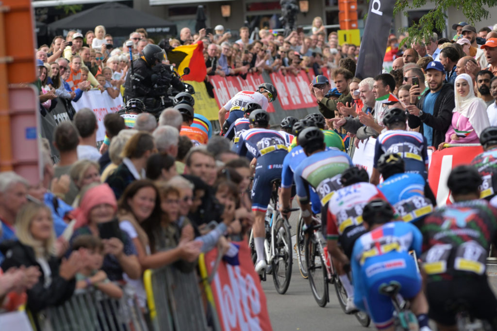 ロード世界選手権も後半戦。11名で競い合うMH2 個人ロードレースに出場した官野選手と野田選手は、起伏の大きなコースに苦戦。序盤から飛び出した欧州選手グループよりやや後ろに位置して、協力して追走しました。
