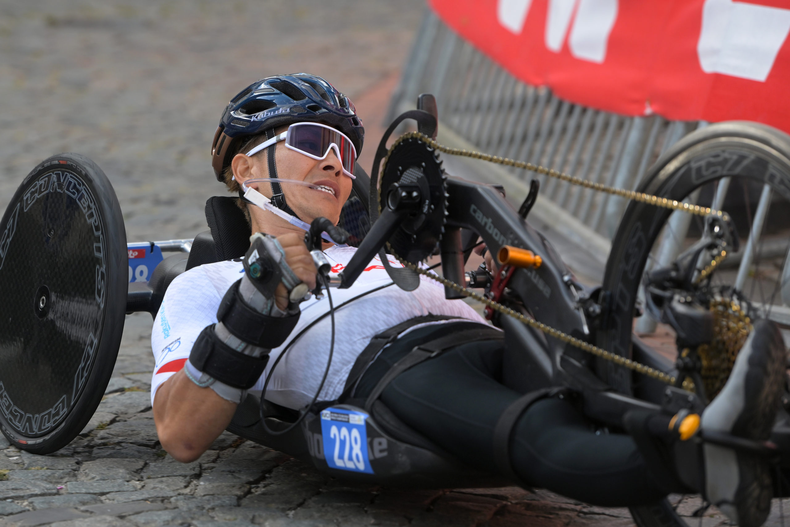 17人がエントリーした男子T2クラスのロードレース。レースは序盤から落車が発生し、前回王者のデニス・コナーズ選手(アメリカ)がリタイアするなど波乱の幕開けに。