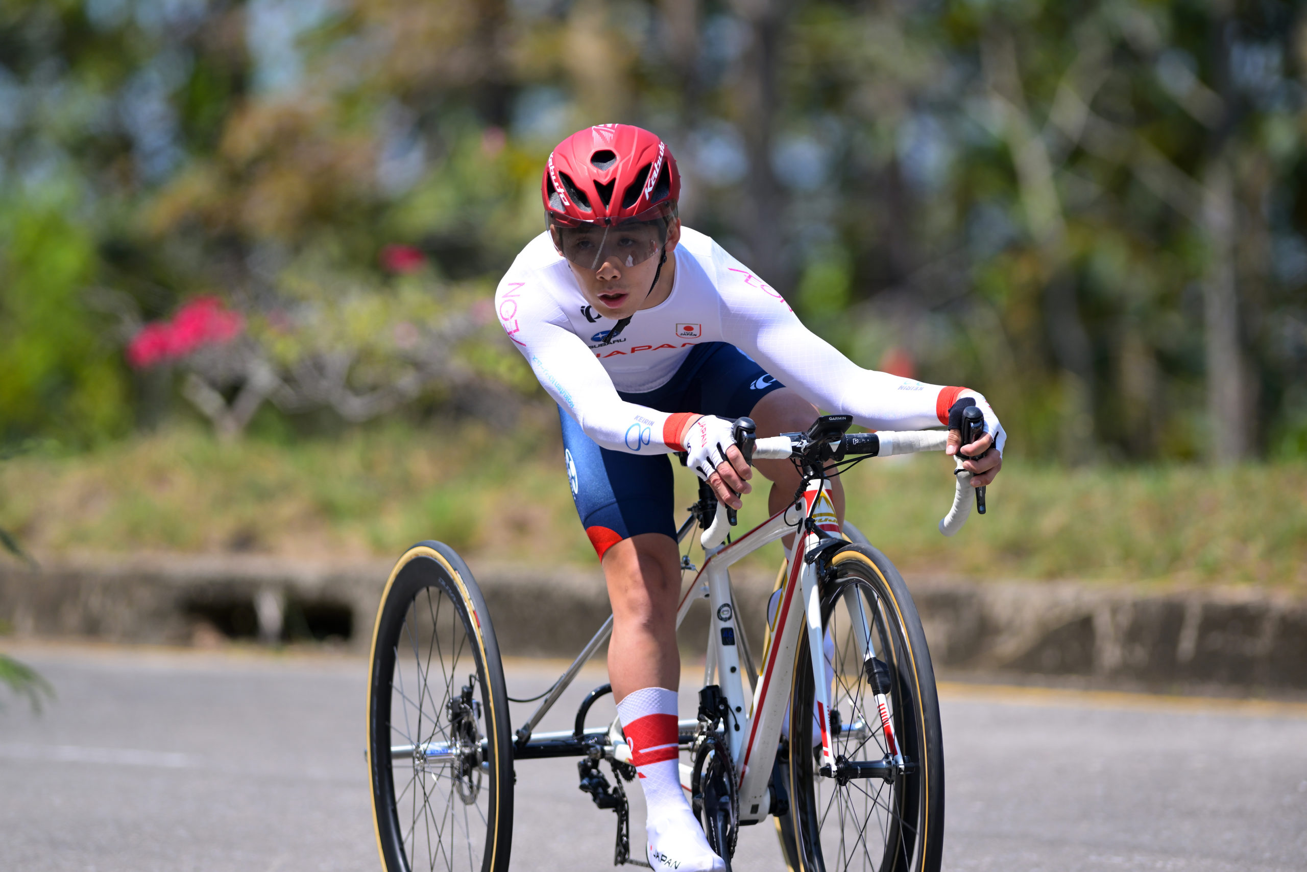 MH2の個人タイムトライアルには、官野 一彦選手が出走。官野選手もまた、先月のロード・アジア選手権で二冠を達成し、好調を見せる選手です。世界各地の選手が集うワールドカップでも成績を残すべく、スタートを切りました。